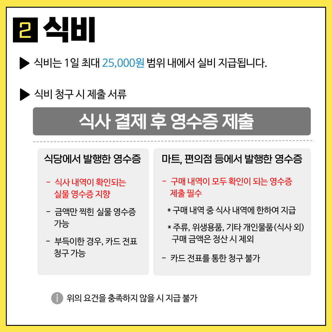 여비(식비, 교통비)를 청구할 때 적용되는 기준을 안내드립니다.