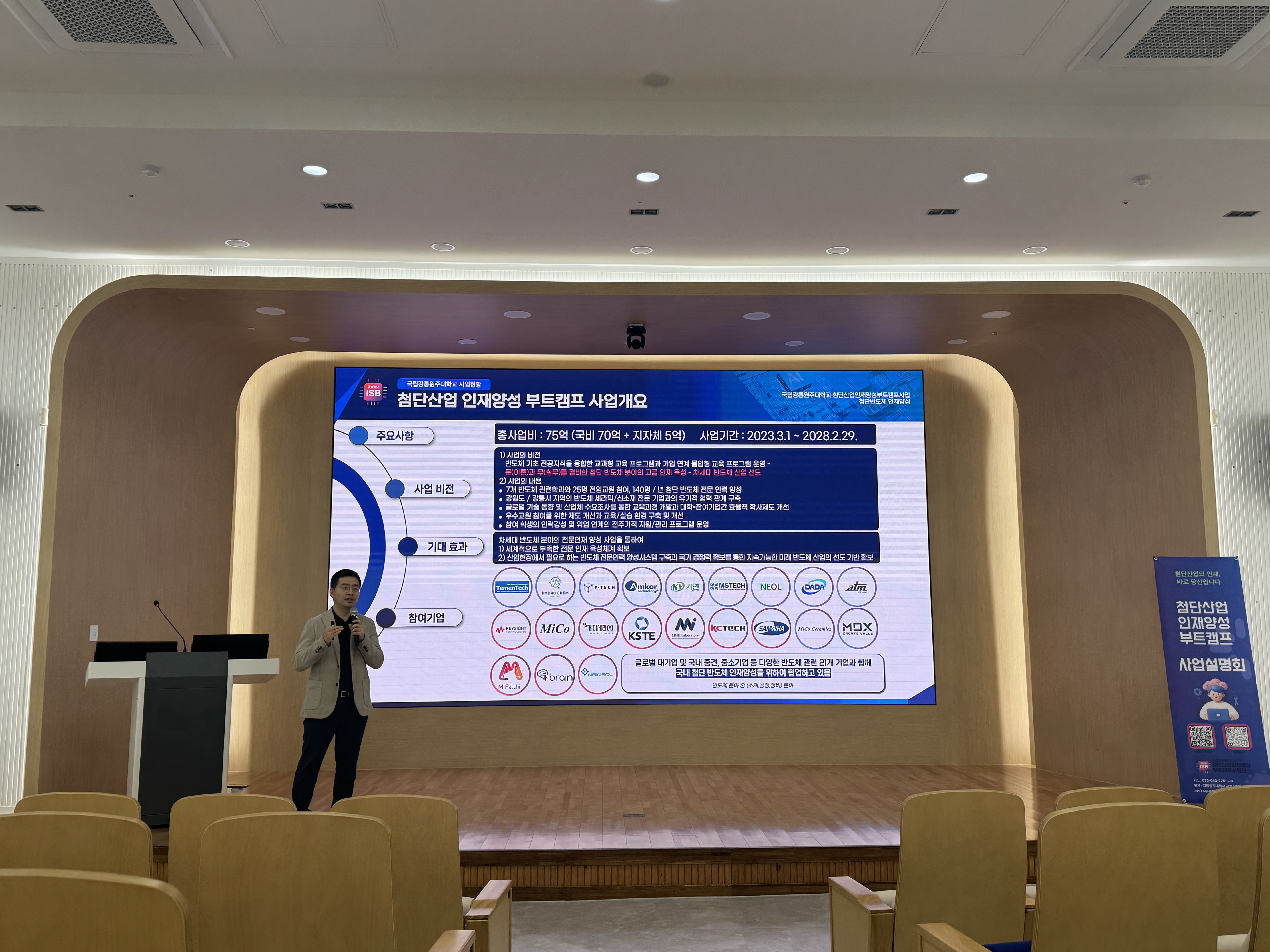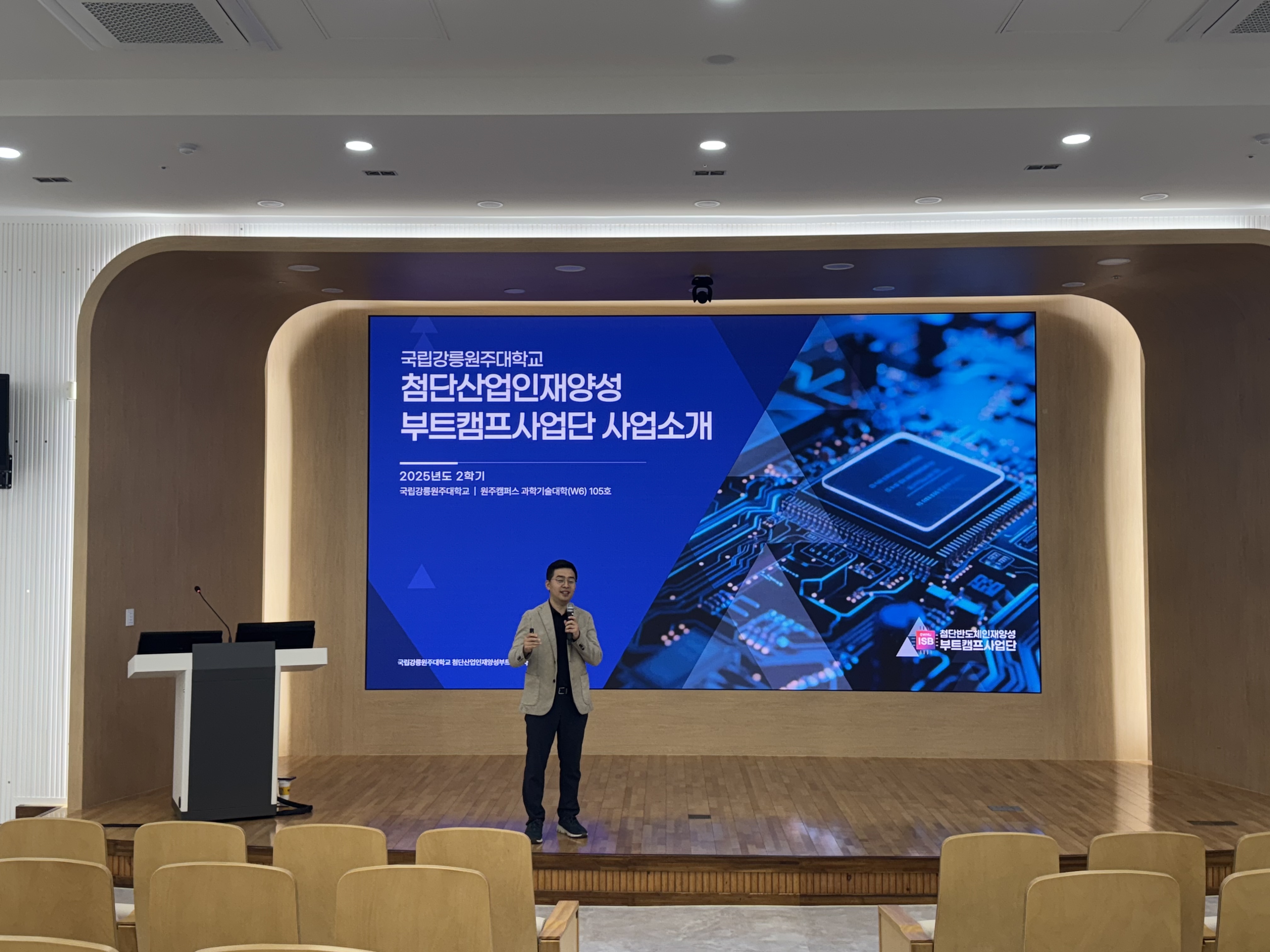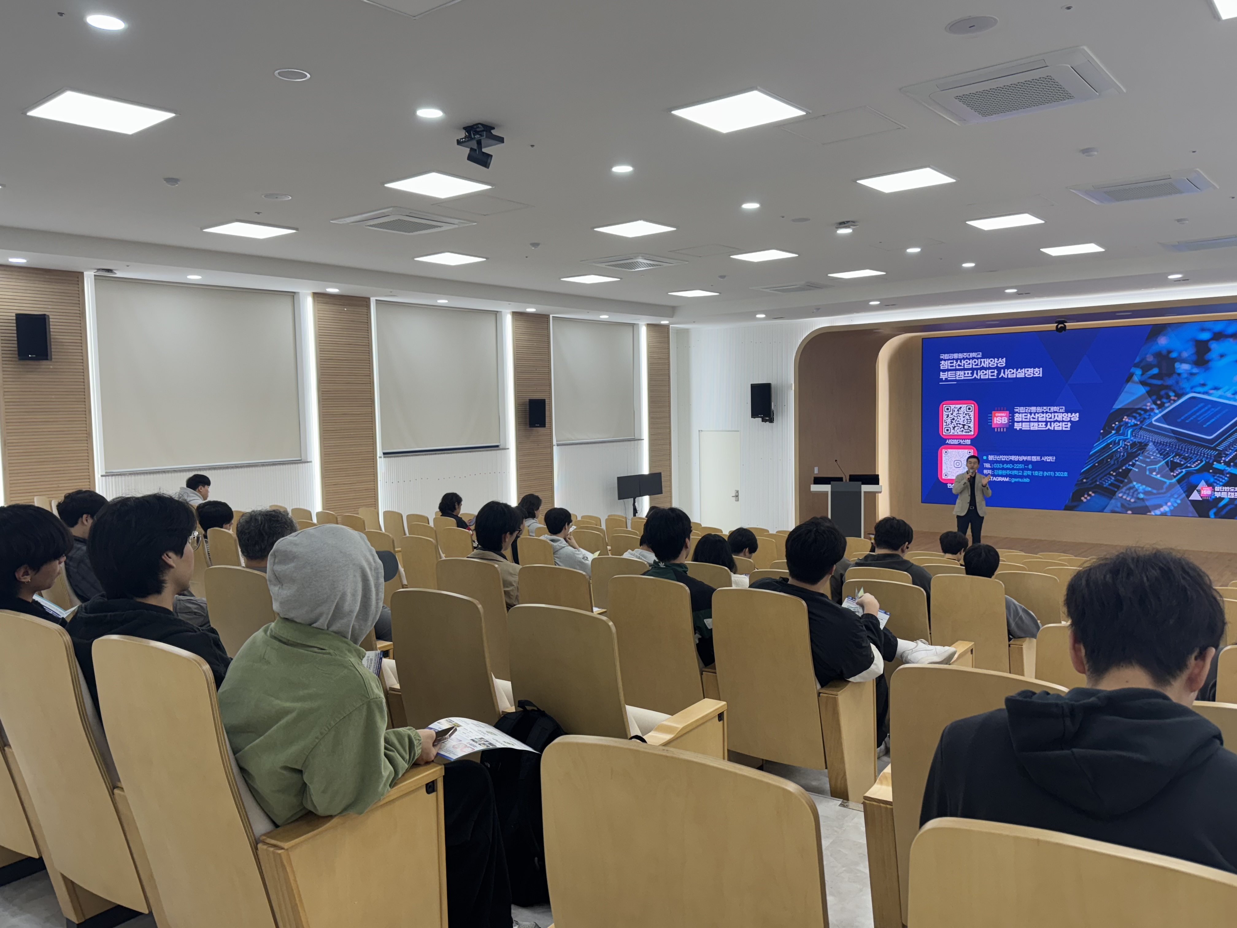 첨단산업 인재양성 부트캠프사업단은 지난 10월 15일(수) 원주캠퍼스에서 사업설명회를 개최하였다. 이번 설명회에서는 교육 프로그램 안내, 글로벌 연수 프로그램 변경 안내, 25년 비교과 프로그램 안내 등을 진행하였다. 사업단의 목표, 커리큘럼, 지원 혜택 등을 설명하여 사업 참여와 관련하여 학생들의 궁금증을 해소하는 시간이 되었다.
